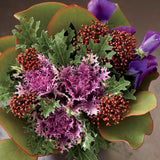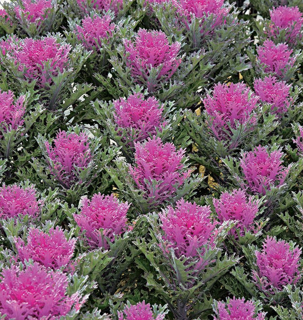 Crane Feather Queen is an F1 hybrid kale bred specifically for use as a cut flower in winter bouquets and flower arrangements. Deeply cut, frilly leaves in silvery grey surround a rosette of interior leaves that become a deep, dark pink in response to cold weather. The annual plants for a single, upright stem 50- 90cm (20-36") tall, depending on timing. Sow the seeds in flats in mid- to late summer, and transplant out with the protection of lightweight row cover when the seedlings have two to three true leaves. We recommend the use of flower netting to keep the stems straight and upright. In 90-120 days the stalks will be ready for cutting and the leaves will be ready for amazing flower arrangements. Tight spacing encourages taller growth. Once the plants are 25cm (10") tall, begin to remove the lowest leaves to encourage thinner stems. These are technically edible, and may become sweeter after frost.