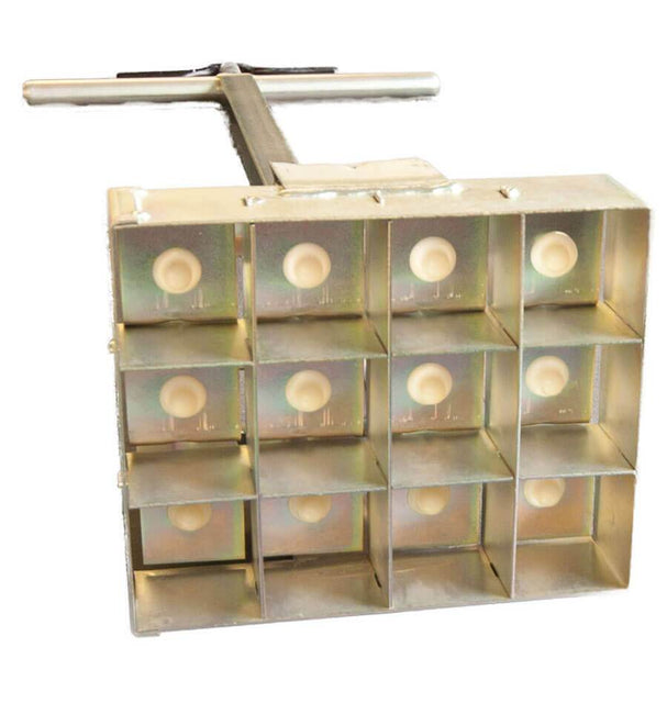 The Soil Blocker Multi 12 produces 12 x 5 cm (2 inch) soil blocks. It comes with Seed Pins that create indentations for small seeds. 5 cm (2 inch) soil blocks are versatile and can be used for seedlings that will directly transplanted as well as those that require "potting up" into larger soil blocks so they can grow good sized root balls. They can also accommodate soil blocks produced by the Micro 20 when fitted with Cube Inserts (sold separately).