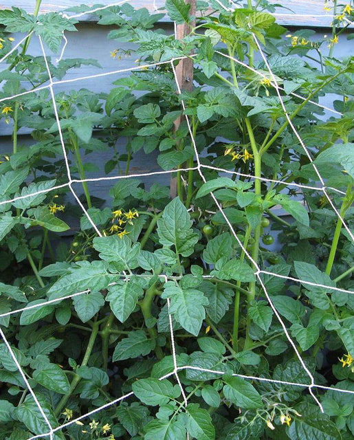 Easy to use, this nylon trellis is great for large plants such as tomatoes, vining squash, melons, and cucumbers. It's also good as a support for sweet peas, morning glory, nasturtiums, and any other vine forming plant. Simply wind the growing end of the plant through the large 18cm (7") openings. The soft, white nylon will not decay. Laid on the ground, this product will prevent cats from using your garden as a litter box. Simply let the plants grow up, through the nylon trellis, and protect your valuable soil. Available in two sizes.
