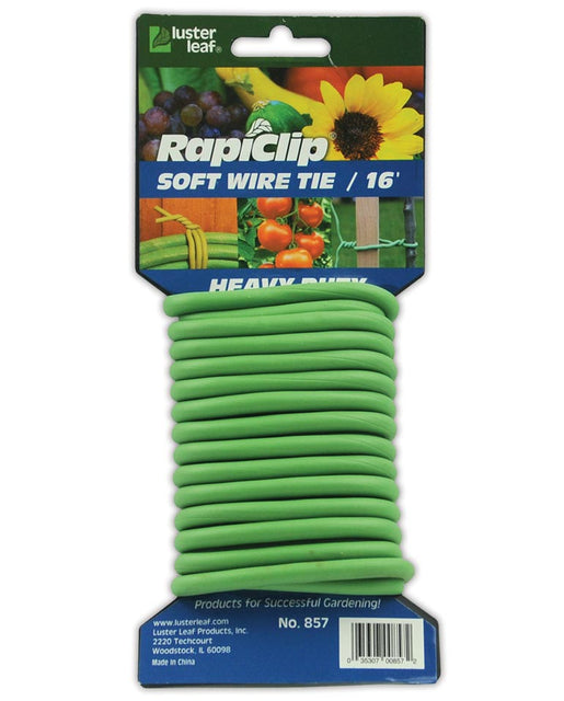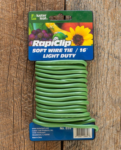 This Soft Wire Tie is actually a thin metal wire that is coated in soft rubber. It can easily be cut with scissors or secateurs, and used to gently support tomato branches, rose stems, and any other soft plant tissue. It is extremely pliable, but strong. Bend it into an S shape or figure eight, or use it as a hook for keeping fruits off the ground. It includes 16' of tie.