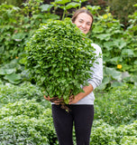 The aptly named Emerald Tower basil towers above all other varieties, growing 60-90cm (24-36") tall in a compact column. This Genovese type works well in the ground, in containers, and hydroponics, with lush, dark green, flavourful leaves. Emerald Tower blooms up to eight weeks later than other basil, providing multiple cuts throughout the summer. It has been a show piece in our herb trials for several years. This basil is resistant to downy mildew and Fusarium.