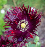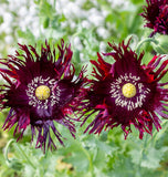 Papaver somniferum. The flowers of Black Swan poppy are almost peony-like, with finely cut, deeply frilled, dark red petals, and fully double form. The strong, upright stems grow as tall as 120cm (48"), but the flowers themselves are just incredible. They are followed by large, curious seed pods full of edible poppy seeds for baking. The striking flowers are magnets for bees, but deer tend to give them a complete pass. Direct sow, and expect some self sowing to occur.