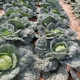 Cabbage does best in humus-rich soil amended with composted manure. Mix ½ cup complete organic fertilizer into the soil beneath each transplant. If growth slows, side dress with a little more balanced organic fertilizer. Heads of early varieties can split from over-maturity, rapid growth after heavy rain, or irrigation after dry spells. Splits can be delayed by twisting the plant or cultivating deeply next to plants in order to break roots and slow growth. Fall and winter varieties stand in the garden longer without splitting. If direct sown, add 20-25 days to the maturity date.