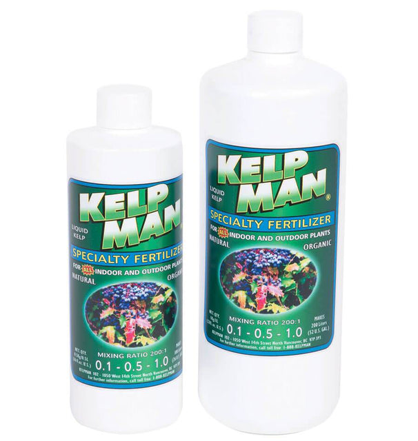 Kelp beds off Port Hardy are harvested for top, actively-growing fronds. Kelpman Liquid Kelp contains micronutrients, as well as growth-stimulating substances that improve the overall vigour and stress resistance of plants. Dilution is 200 to 1, so the bottle lasts a long time. Use Kelpman at transplanting time, and also at regular intervals throughout the growing season. Liquid kelp is useful as a foliar feed, and it's great for containers and raised beds. It will keep your crops growing vigorously right through the season. This product is greatly diluted in water for use, so one jug goes a long way.