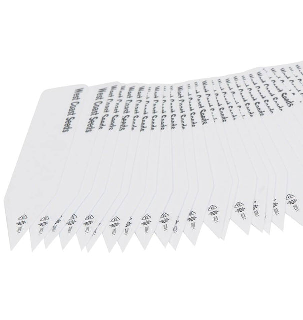 These handy plastic seedling Plant Labels (West Coast Seeds) provide with lots of room to write each seed variety and dates. Try our permanent and non-permanent china weather-proof markers on them for use with containers or in the garden. Labels are imprinted with "West Coast Seeds" 2.5cm wide x 15.2cm long (1" wide x 6" tall).