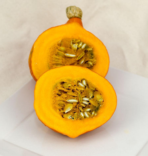 This productive hybrid is a red-skinned twist on the beloved Shochiki Green kabocha. Expect five to seven fruits per plant, each with dark orange, fine-grained flesh and a sweet, nutty flavour that shines when roasted. Slightly larger than its green counterpart, this mini kabocha offers excellent texture and flavour with beautiful garden appeal. A compact and reliable performer for summer gardens and late-season harvests.