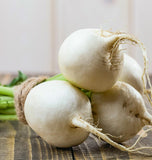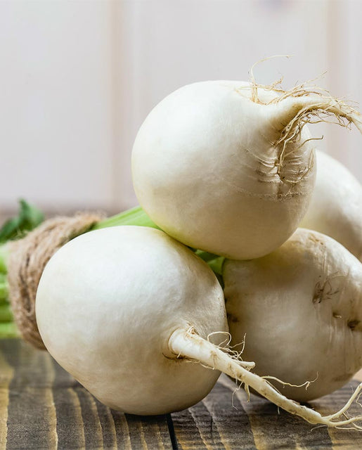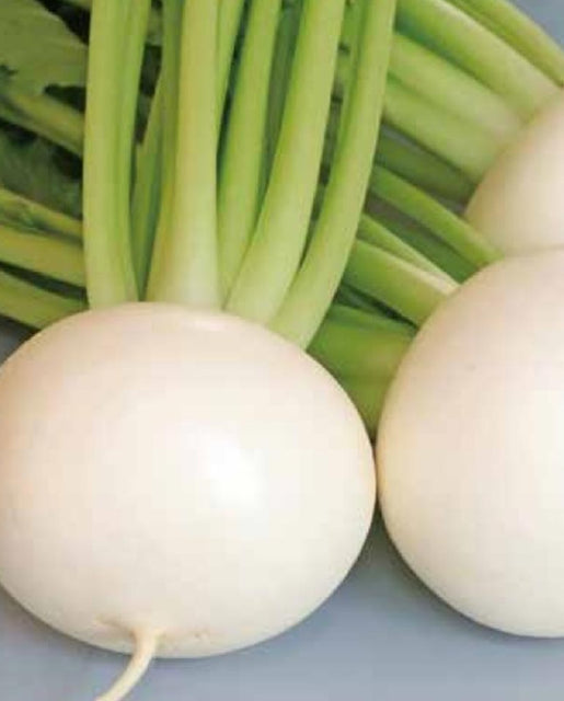 Silky Sweet turnip seeds produce high yields of sweet white turnips with the most amazing texture. They really are silky — very tender with smooth flesh and a distinct sweetness. This turnip is ideal for spring and autumn harvests, and is best picked at 7cm (3") in diameter. It's a great candidate for succession planting. Direct sow short rows every two weeks starting at the last average frost date, and harvest just 35 days later. This turnip has high resistance to White Rust.