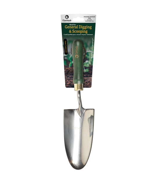 This general purpose trowel features a beech handle with a leather strap and a polished, stainless steel blade. Ideal for digging and scooping.